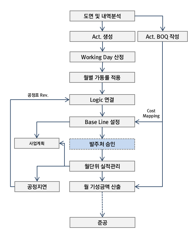 CPM 공정표 관리, 운용을 하지 않으면 이 질문에 구체적인 숫자, 정량적 방향성을 제시할 수 없습니다.