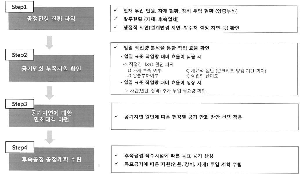 - 공기지연에 대한 만회대책 마련 : 공기지연 원인 해소