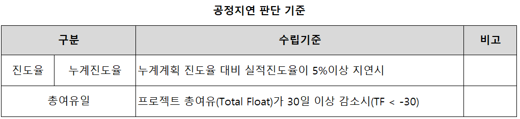 그 정의에 수렴할 경우, 즉 계약서에 약속된 "공정지연 판단기준"에 해당 될 경우