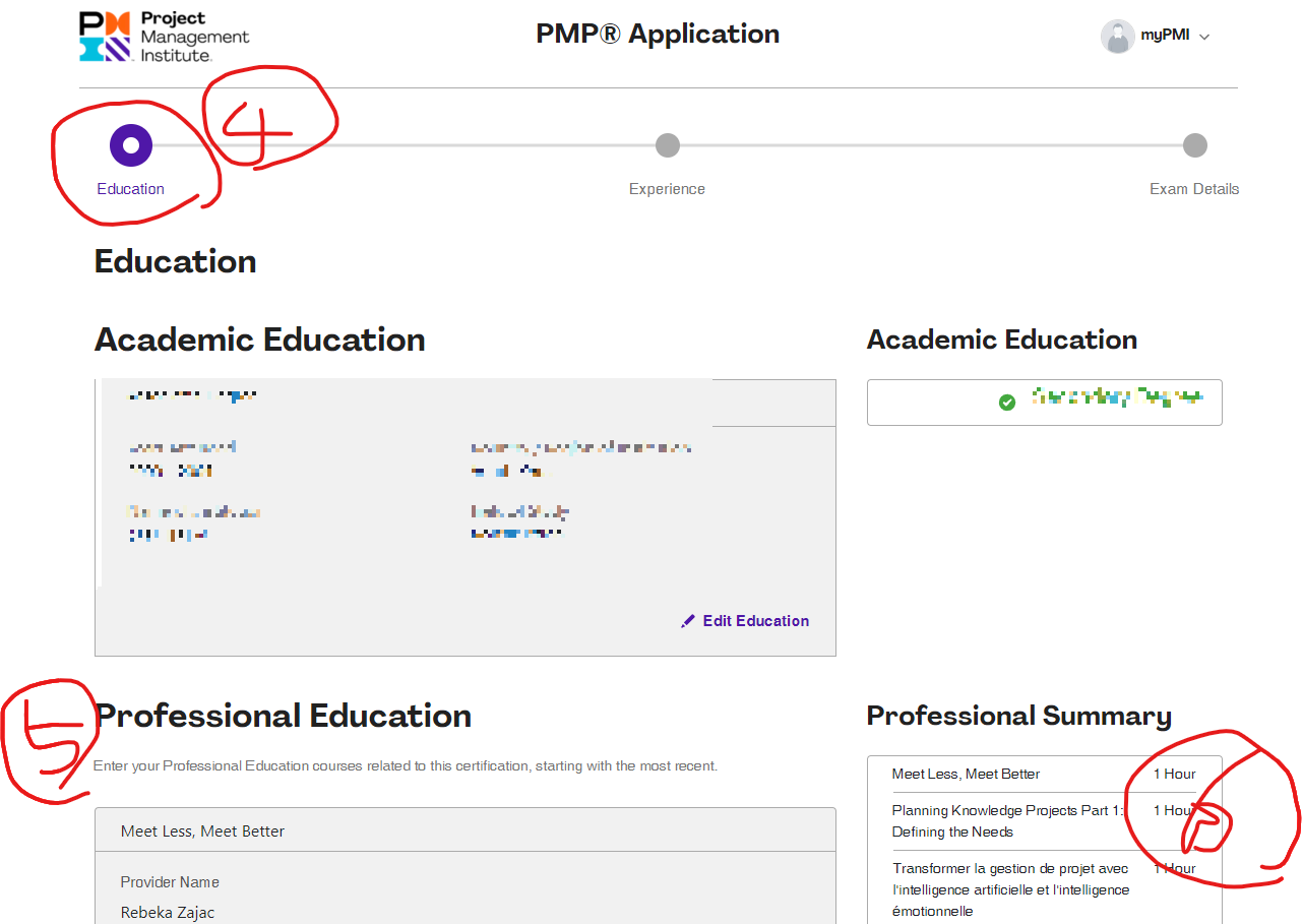 - Professional Education 에 관련 동영상 강의 들은 정보를 입력하면 되는데, 이를 PDU라고 합니다.