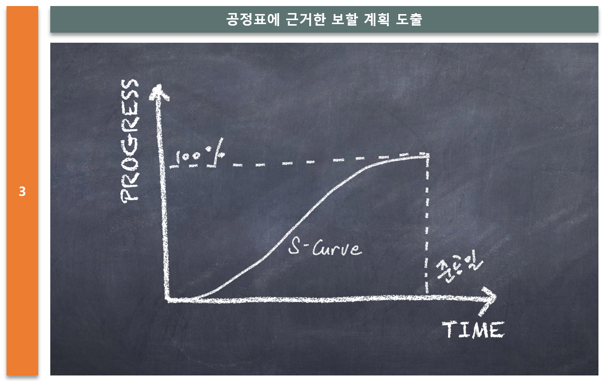 여기서의 S-Curve는 다른말로 "계획공정률" 또는 "보할계획" 이라고 표현할 수 있겠습니다.