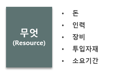 위에서 Resource는 일반적으로 공사에 투입되는 비용(돈)을 기준으로 한다면.