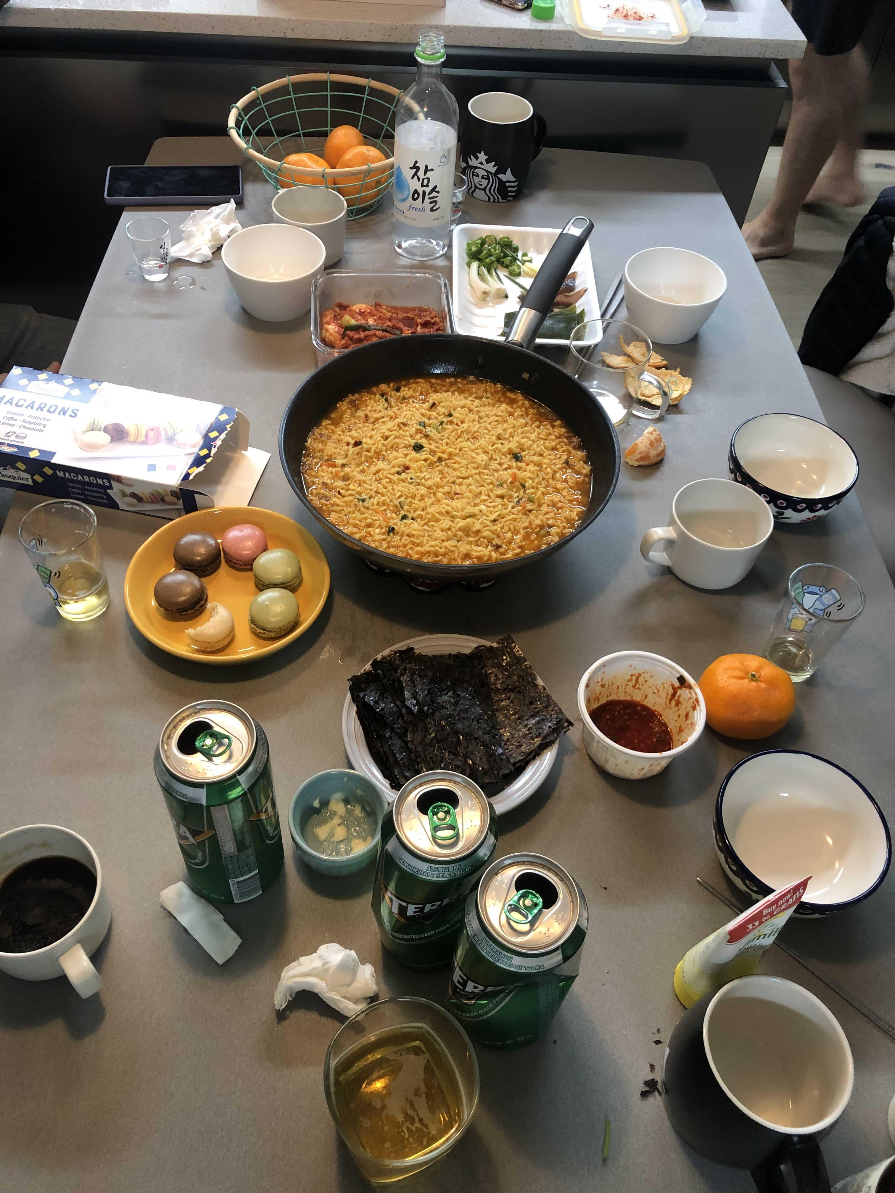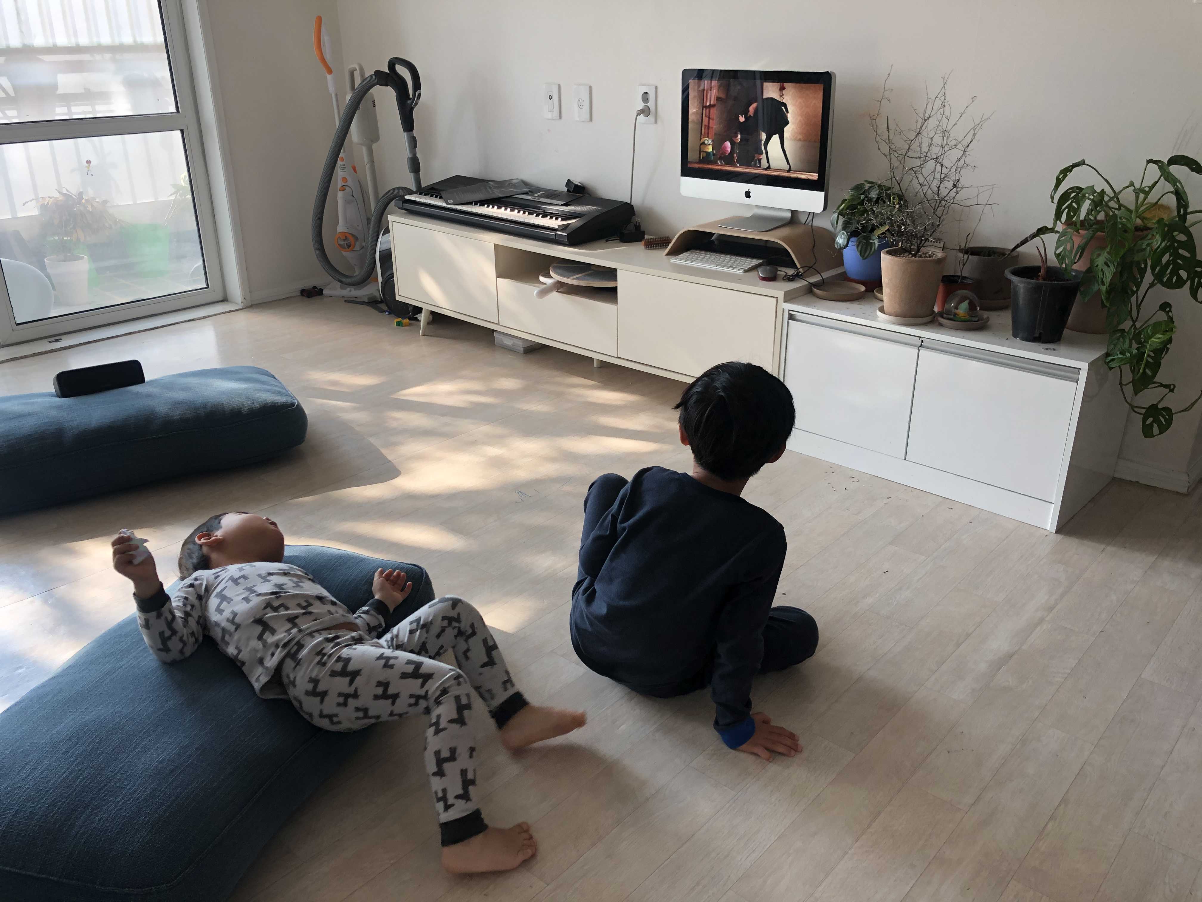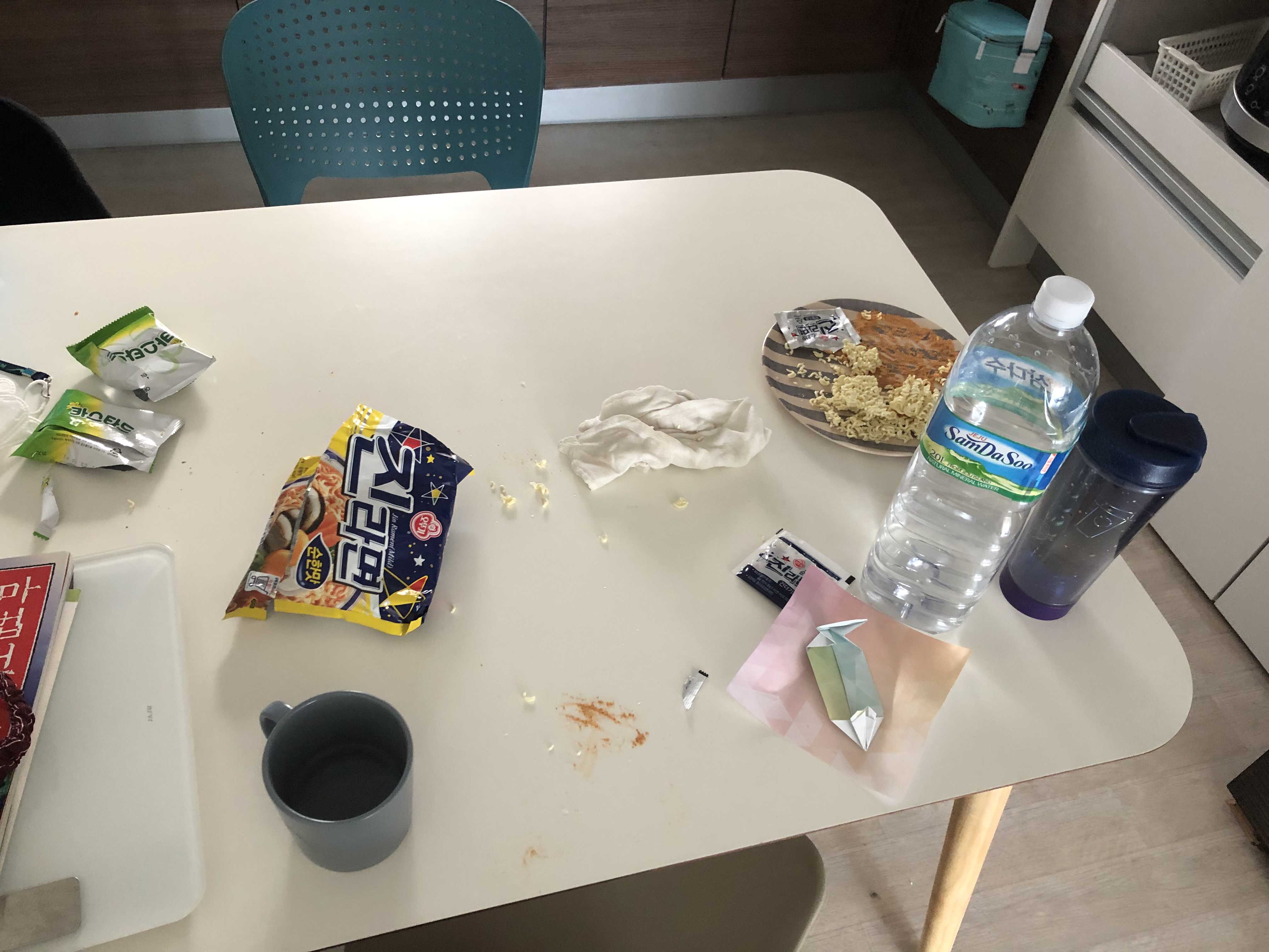 아침부터 생라면 먹고 이렇게 널부러져 있던 아이들은